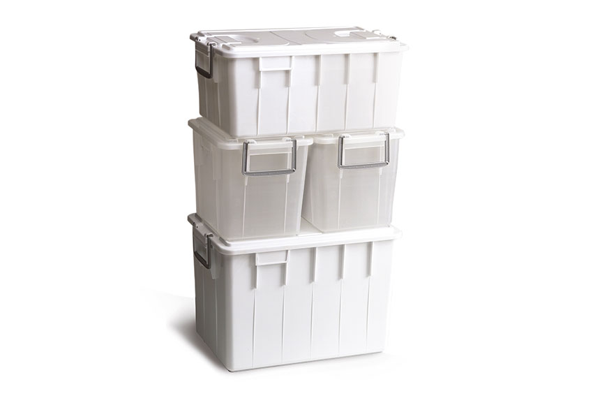 - Die Behälter sind mit geschlossenem Deckel leicht stapelbar