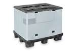 - Klappkisten mit 6 Scharnieren mit Deckel und Palette (9 Füße)Bis zu maximal 6 vollständig entfaltete Sleeve Boxes übereinander
