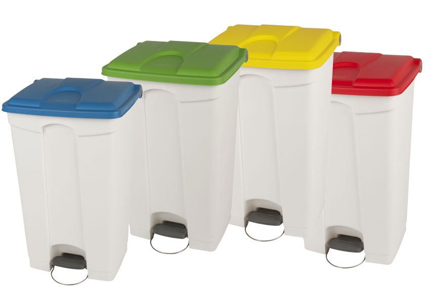 Rectangular step-on waste bin 90l - white body + coloured lid 500x412x820mm