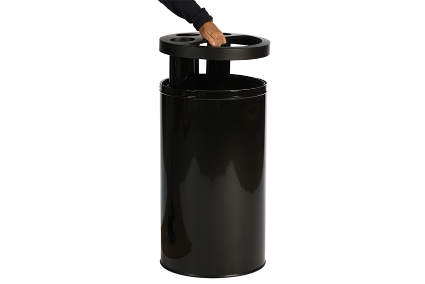 - Black metal, epoxy-coated; lids and tubes in durable black plastic