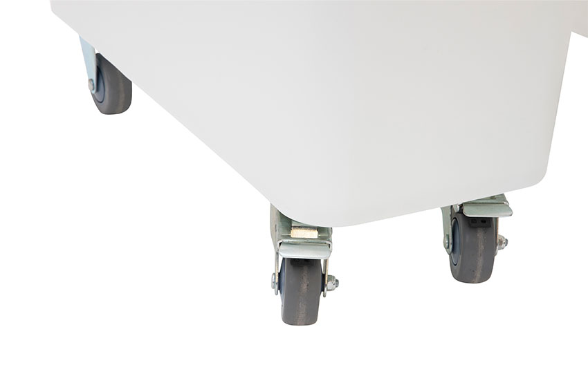 - 2 fixed wheels, 2 swivel wheels with brakes