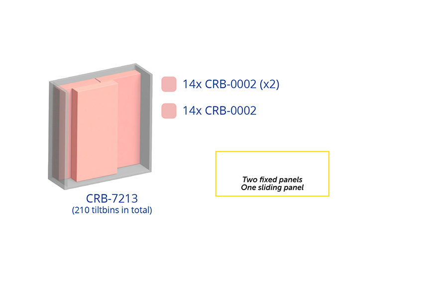 - Integrated tilting tray modules per sliding panel: 14x CRB-0002