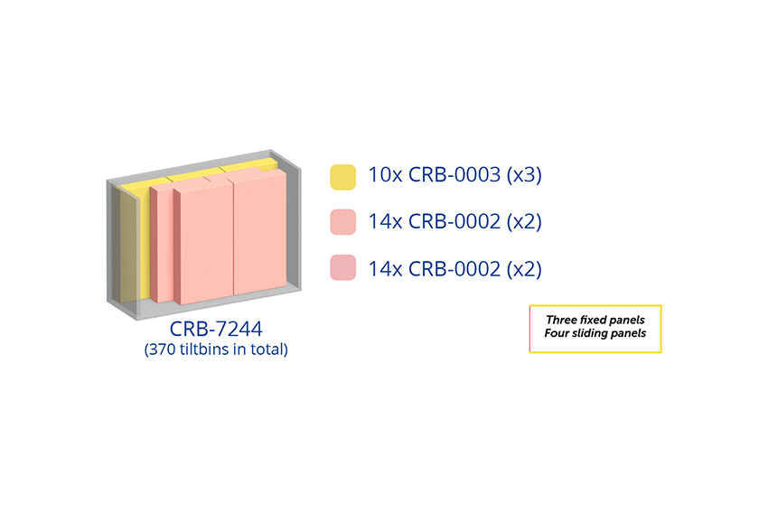 • Integrated tilting tray modules per sliding panel: 14x CRB-0002 (x4)