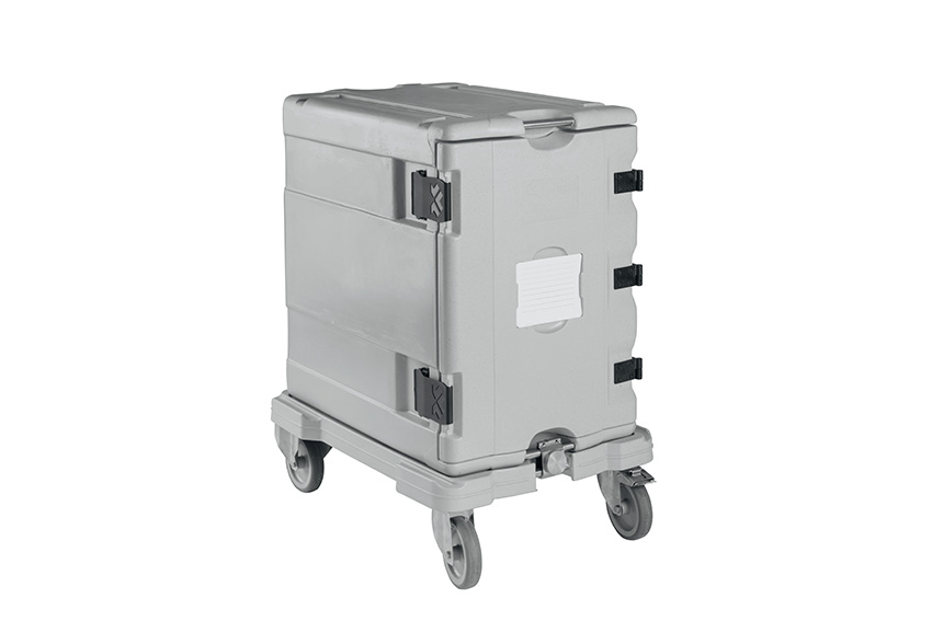 Chariot de transport conteneur isotherme - 505x685x205mm - 2 roues fixes + 2 pivotantes, 1 frein