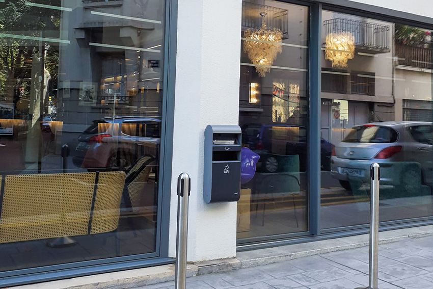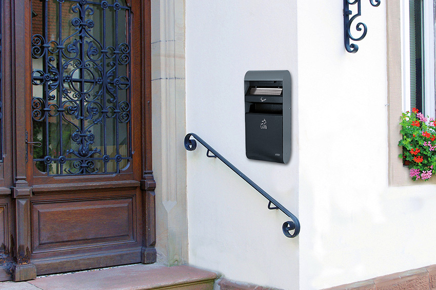 Cendrier mural - 3l + poubelle 14l - jusqu'a 990 megots - 300x140x670mm