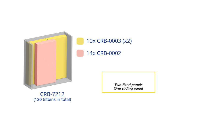 - Modules de bacs basculants intégrés par panneau coulissant : 14x CRB-0002