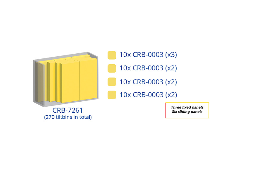 - Geïntegreerde kantelbakmodules per achterpaneel: 10x CRB-0003 (x3)